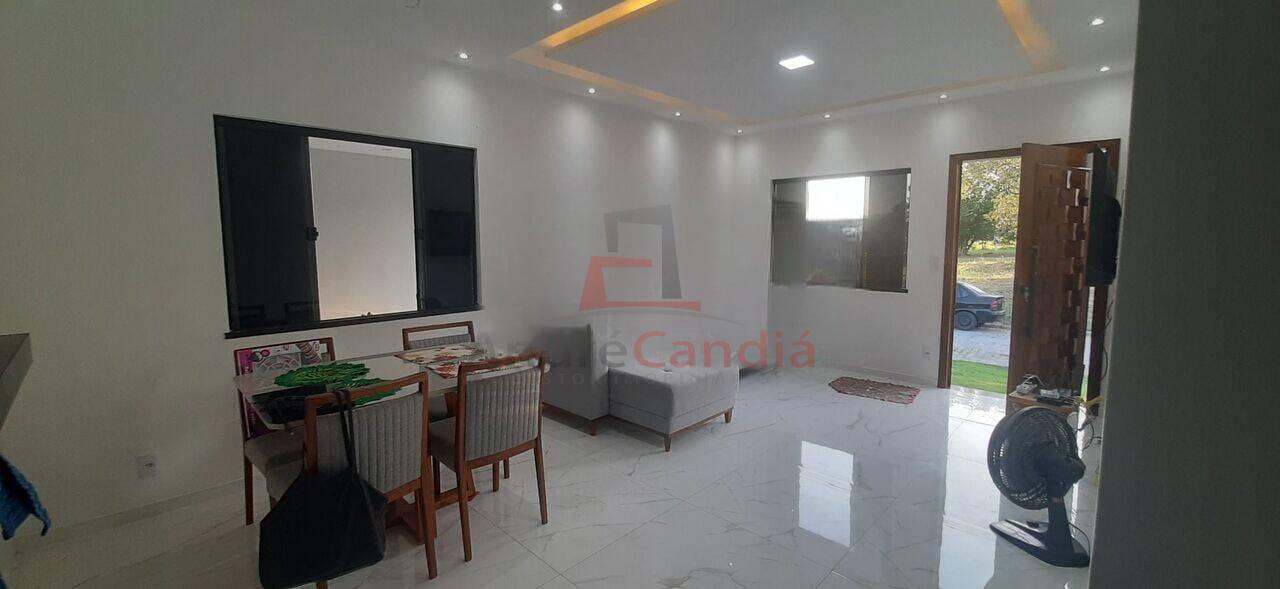 Casa com - 02 quartos (sendo 1 suíte) - Banheiro com box em vidro temperado - Sala ampla com decoração de teto em gesso e iluminação em LED - Cozinha integrada com bancada em granito - Banheiro social, - Terreno com espaço para diversão e área gourmet em fase final de construção - Garagem coberta.