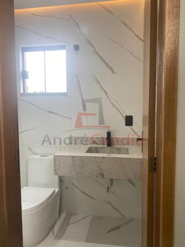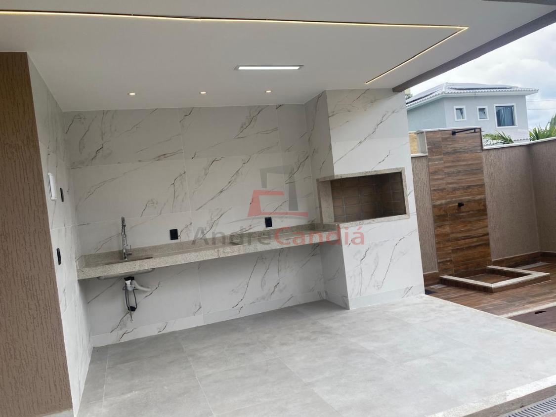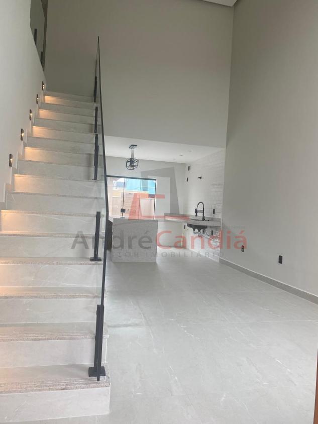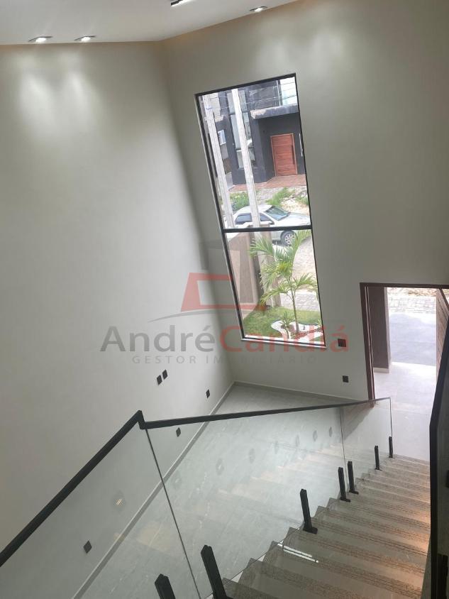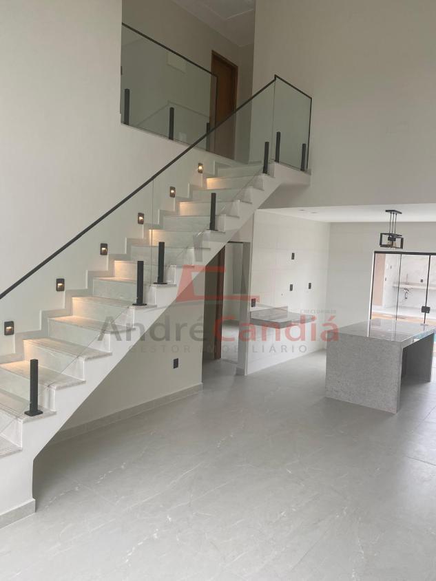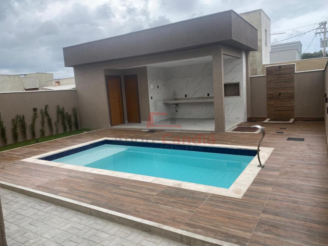 A casa é centro de terreno e composta de: sala de estar e jantar ambas com pé direito duplo; cozinha em conceito aberto com ilha; 3 quartos sendo 2 suítes no segundo andar (uma com closet e outra com varanda); banheiro social; área de serviço; escritório/home office; garagem coberta para até 2 carros; caixas d'água com 2 mil litros + cisterna com 10 mil litros automatizada; área gourmet com churrasqueira, lavabo e depósito; piscina com deck, gramado e paisagismo.